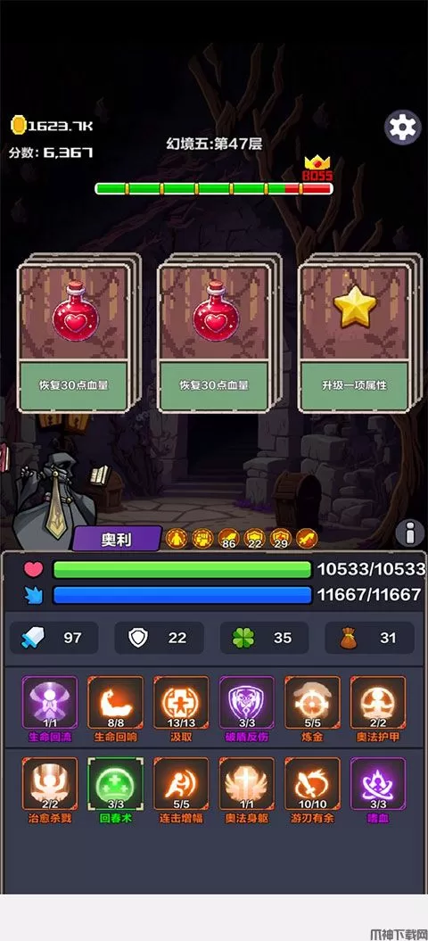 幻境之旅官方版是一款充满奇幻色彩的角色扮演游戏,在这里,你将置身于一个神秘而美丽的幻境世界,开始一段激动人心的冒险旅程。丰富多样的技能组合,多个不同类型的英雄,全新的剧情设定,带你体验与众不同的冒险。元素丰富,充斥着各式各样的不同元素,包括神秘的怪物、宝箱、多样化的技能、血瓶、钱袋、奇遇事件、商店和祝福,每个元素都将为冒险增添不同的色彩。幻境之旅手游上手简单,趣味休闲,玩家可以轻松上手,尽情享受游戏的乐趣,无时间限制和体力限制,让冒险变得轻松而有趣。