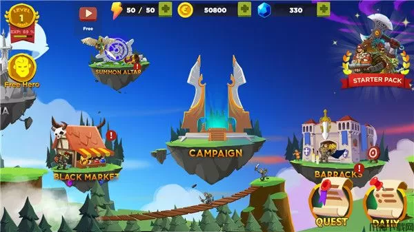 1、50个具有挑战性的关卡,召唤你的英雄,让他们去帮你来防御敌人对你的各种攻击