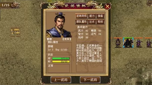 10、战前在曹军主营,点击武将可获得战斗情报!