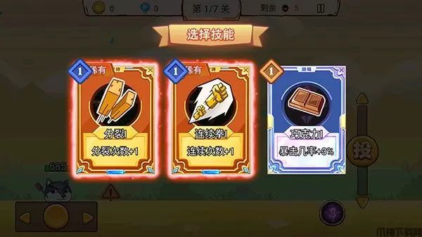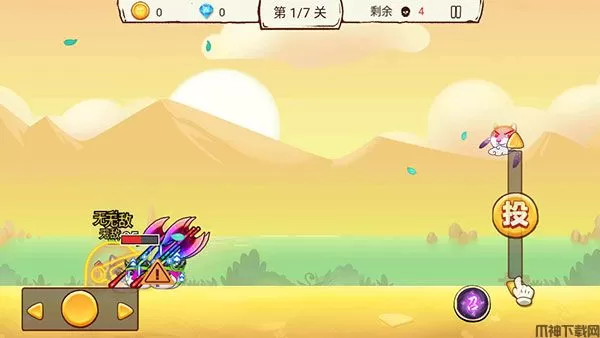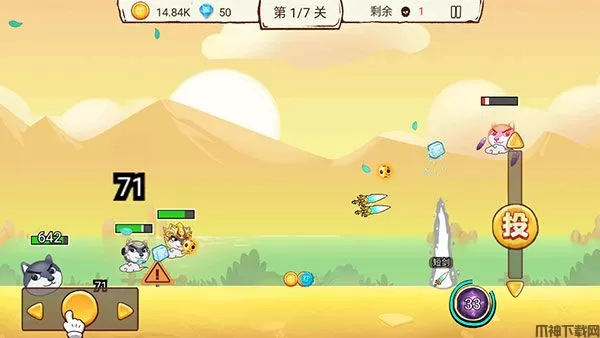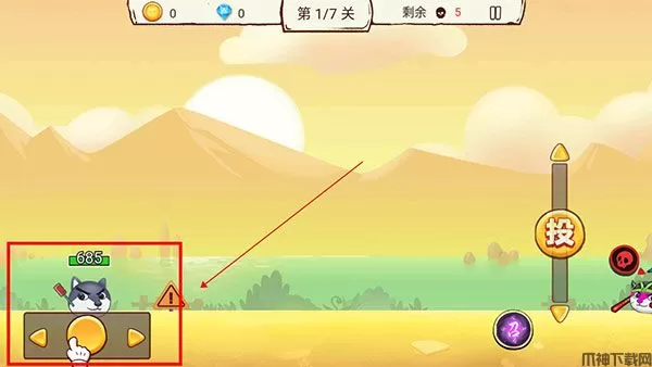 3、通过左方按钮可操控狗头进行移动,通过上下滑动“投”可进行远程射击;