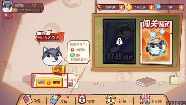 6、领取完奖励后玩家们还可以对狗头进行修炼升级,然后点击装备按钮;