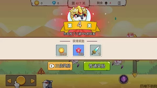 5、待新手引领关卡完成时,可通过观看广告领取三倍奖励;
