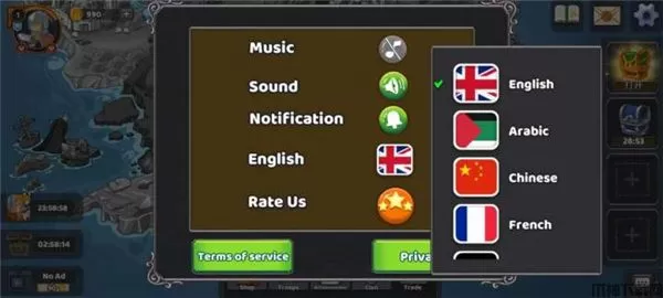 2、进入游戏后,我们会发现语言是英文的,所以我们需要点击右上方的齿轮按钮;