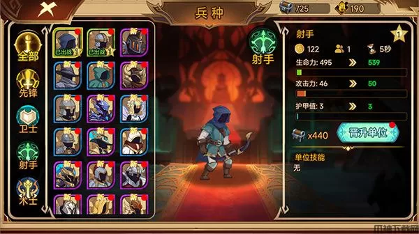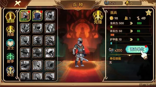 8、使用获得的奖励对每一个士兵进行晋升,可以大大提高他们的战斗能力;