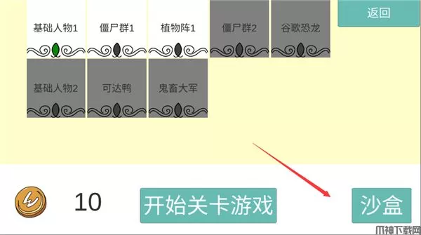 8、如果玩家觉得普通玩法不得劲,还可以在开始游戏时选择右下方的沙盒进入游戏;
