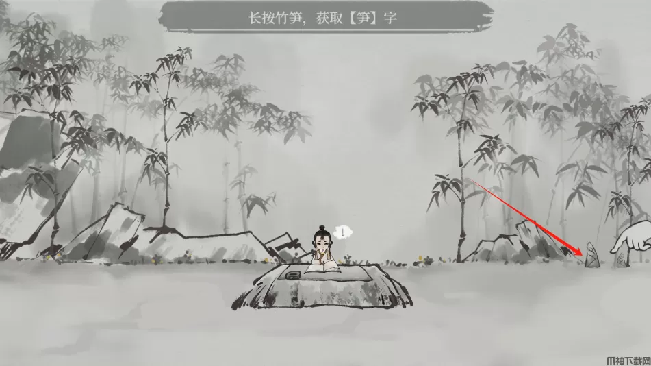 2、接着点击右边的竹笋,得到笋字,根据提示将笋字中间分开。