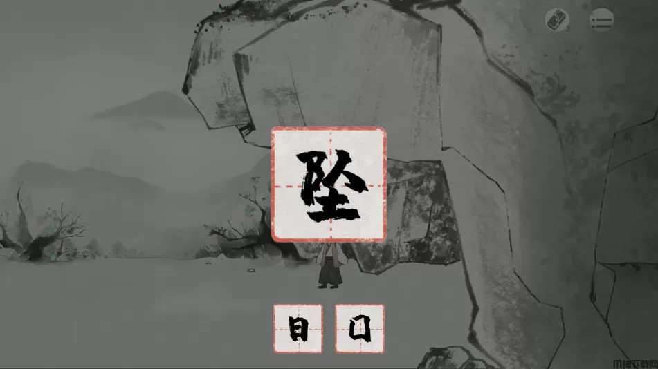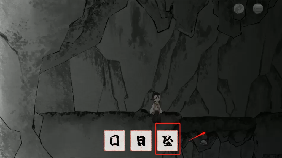 5、操作主角向右走,和士兵小哥对话完成之后,将士兵小哥和旁边的石头收集起来得到石和卒,将两个字结合成为碎,将碎字放到石头上