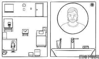 2、首先是类似教学关卡,去往1处点击后右侧点击杯子里的牙刷,然后依照提示左右拖动刷牙。之后点击水龙头,使用毛巾洁面完成。