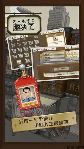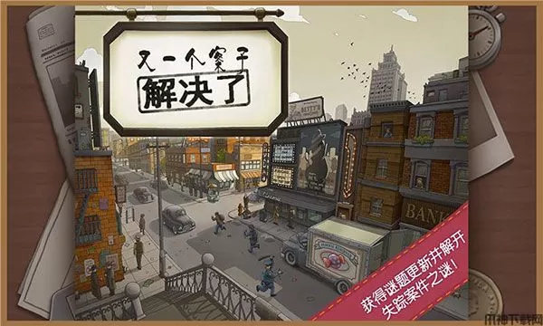 又一个案子解决了官方版是一款题材独特的冒险解谜类手游。游戏也主要是围绕糖果大盗的抓捕进而展开各种各样的调查活动,看似内容有些凌乱,实际上游戏套路是比较清晰的。在游戏玩法上,玩家需要通过像连连看这样的消除机制收集足够多的侦探点数,通过这些点数寻找线索完成任务。玩法虽然略显奇葩,但是破案的过程还是非常丰富有趣的,玩家即要通过各种对话找到最终人物,也要在城市中搜寻到犯人的藏身位置。尽管又一个案子解决了这款游戏的画面谈不上多么亮丽,但要是说朴实的话,那它一定是实至名归的,你所看到的画面既有些诙谐,又不过份浮夸做作,一种复古泛黄的色调和怀旧的人物着装很容易让人回溯起福尔摩斯时代,而这种独特的画面设定也能够让人沉下心来办好每一件案子。