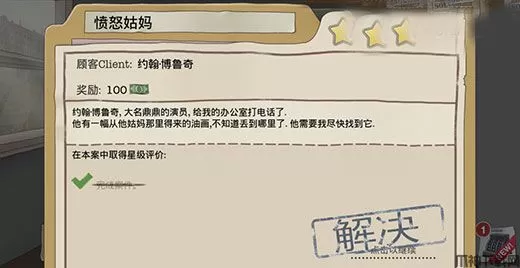 “愤怒的姑妈”这个案件讲的是名演员与他姑妈之间的矛盾,他把他姑妈送她的一幅画弄丢了,通过收集信息,我们发现原来那幅画还在名演员家中,我们需要去发现更多的细节。
