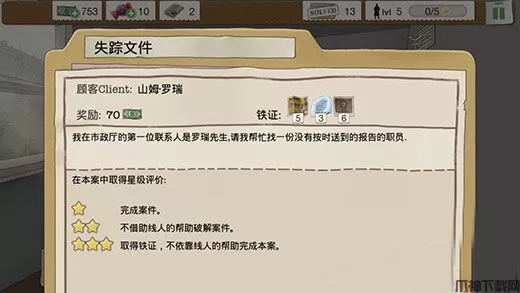 “失踪文件”这个案子主要讲的是一份市政的文件没有按时送到,我们需要找到这份文件,在此之前我们需要调查一下,收集信息,通过收集的信息我们发现原来报告是送到其他职员那里了。