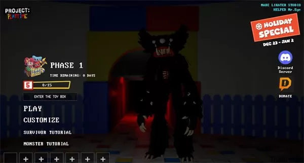 波比的游戏时间计划(Project Playtime)是一款第三方爱好者推出的冒险解谜手游,一般又称波比的游戏时间计划,游戏采用了经典的幸存者合作做任务达成目标逃离、屠夫屠杀幸存者的模式,舞台设定于玩具工厂中,各种小游戏的还挺有趣。游戏内拥有四大章节,每个章节均充满趣味,可充分满足解密党们的游玩需求,而且相比原作,还调高了亮度,减轻了恐怖氛围感,让新手玩家也能更加轻松的享受解密带来的乐趣。