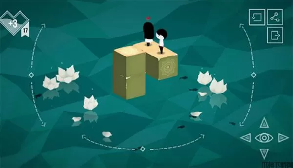 6、易上手!点击相邻方块、旋转魔方和视角就可以帮助女孩接近男孩幻影。