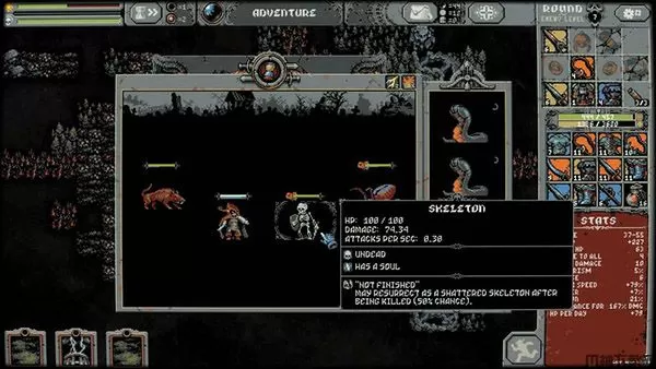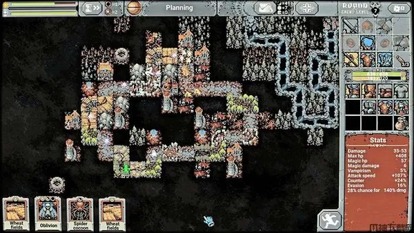 循环英雄手机版(Loop Hero)是一款类Rogue策略逆向塔防游戏,玩家将扮演一名勇士在不断循环的世界中展开冒险,你需要尝试打破巫妖的时间循环,拯救世界于无尽的混乱中。在游戏中玩家需要操控神秘卡牌在冒险中设定建筑和各种地形来影响战斗环境,可以为不同英雄装备强力道具让其上阵杀敌、扩建幸存者营地,也可以放置敌人卡牌来打造艰难险途,玩家需要平衡好生存与资源获取之间的关系。
