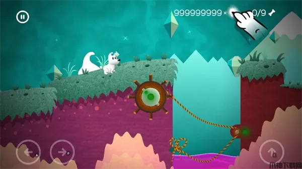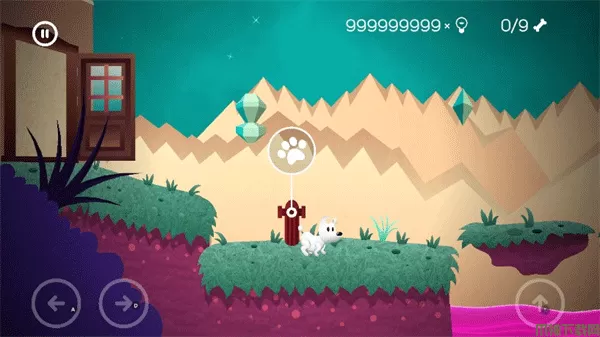 1、在游戏中玩家们需要通过下方的方向按钮来控制着小狗的移动,并且在前进的时候由于那些场景中会出现一些不同的困难,所以玩家们还要能够很好的将那些道具收集并且利用起来,帮助我们正确的前进。