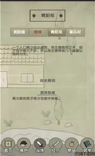 开局!先去武阳镇,进去看见一个巨帅的人!挑战他!差不多三次左右,然后去北部,药店买药(目前就那一种)然后到客栈,把药给掌柜的,掌柜的会给你地窖钥匙,进地窖得到酒,给那个酒鬼,然后打架,获得密林地图。