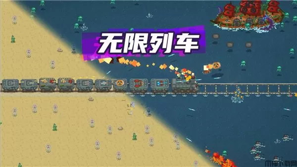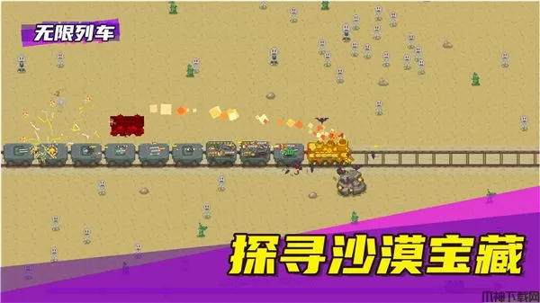 无限列车是一款融合了Roguelike、收集、生存的休闲类游戏,玩家将在游戏内驾驶着一列火车在沙漠中前进,你可以控制列车武器的攻击方向或加速列车,途中需要攻击金矿获得金币,才能购买各种强大的武器、加成和车厢应对怪物。当你车厢越来越多时游戏的难度也会增加,到了游戏后期不止有普通的怪物群,还有会到处飞的厚血条怪物,所以如何管理资金购买合适的武器是非常重要的!