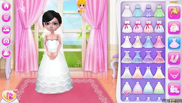 1、在本站下载安装好可可婚礼游戏,打开进入,左侧分别是主页、购物车、背景图、真实拍摄以及套装推荐。