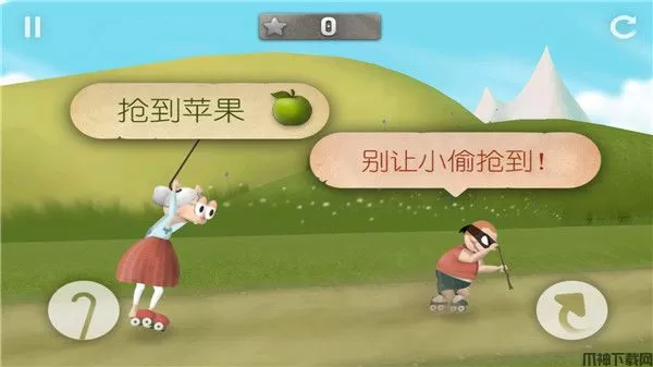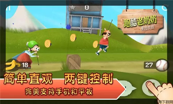 跑酷老奶奶最新版是一款非常好玩的休闲益智类动作手游,游戏的主人公史密斯奶奶是一名快节奏的竞赛高手,撞击技术精湛,特技超群,而且非常爱她的苹果。但是一个配备滚轮装备的贼正在从她珍爱的花园偷苹果,于是她穿上了旱冰鞋越过城市和农村,飞过谷仓和办公室,不顾一切只为了她的苹果。而在游戏中你将控制史密斯奶奶在农场和都市风景区各个场景中一路跳跃、滑翔、摇摆和勇闯多个手工制作的关卡,在追回水果的过程中,不断撞击从谷仓到办公室的一切阻碍物,并在小偷得手之前,先获得苹果!与此同时,游戏节奏较快,充满了各种破碎和特技效果、跳、飘逸、滑行、粉碎等等。游戏的上手难度很低,拥有直观的双键控制,没有复杂的操作,完美支持平板电脑和手机,畅玩没有阻碍。