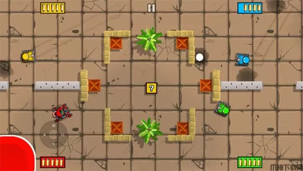 可以是2个人,也可是4个 一起对战,每人控制一台坦克,相互射击,被击中者死亡,出局。所以你需要游戏中四处逃跑,躲开对手的子弹,同时找准时时间射击对手。