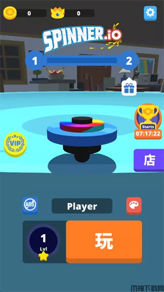 陀螺大作战(Spinner.io)是一款休闲竞技手游,玩家将操控如骷髅头、盾牌、国旗等多样外观的陀螺,在随机出现的一定范围圆盘之中,通过撞击的方式,将其他的陀螺撞出圆盘,或者通过撞击让其失去平衡,获得胜利。陀螺大作战游戏内的陀螺是可以旋转方向的,当陀螺的转速小于与自己逆向旋转的陀螺时,玩家通过碰撞可以增加自己陀螺的转速,合理利用这一技巧可以更加轻松赢得比赛。