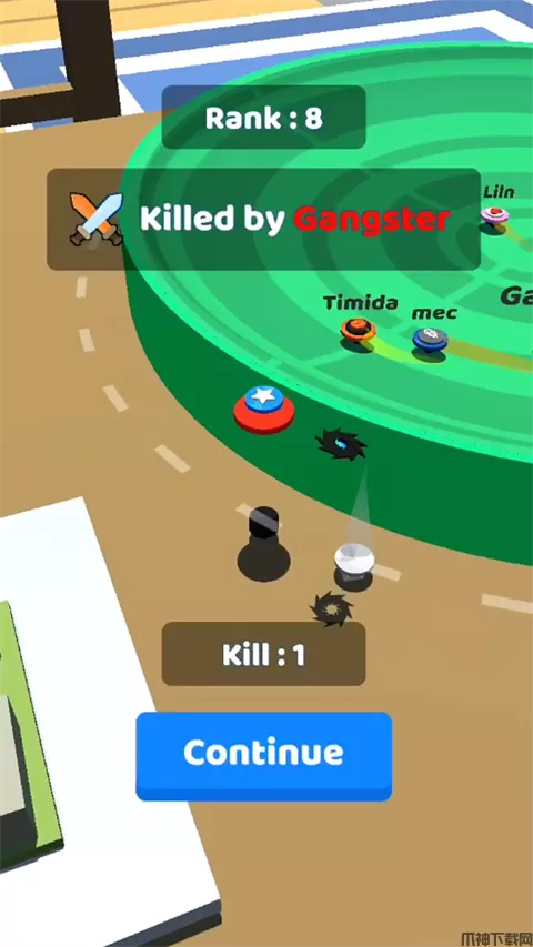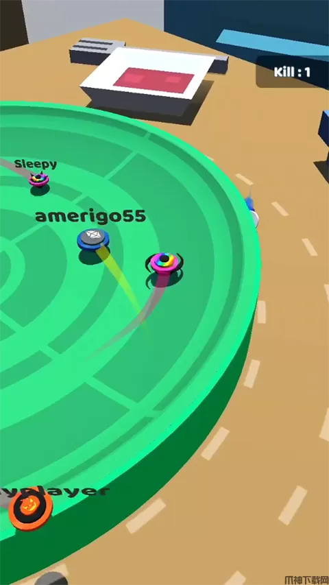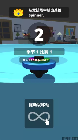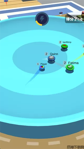 3、玩家需要做的就是,确保自己不要被撞出圆盘的前提下,去撞飞其他的陀螺,赢得比分,从而增加自己陀螺的等级,体积会变得更大。