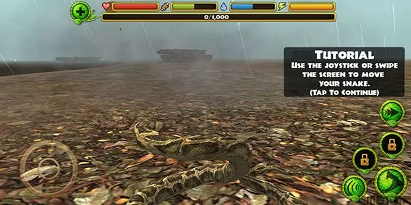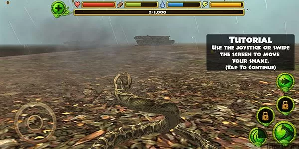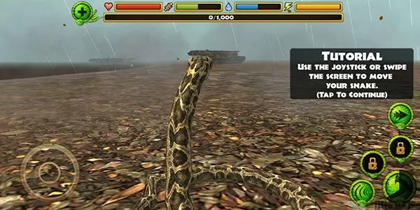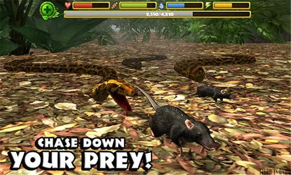 蟒蛇模拟器手机版是一款有着逼真画面的休闲冒险类手游,该游戏以蟒蛇为主视角进行代入,玩家可以获得一种非常新颖且真实的游戏体验。说它新颖是因为游戏视角的新颖,针对于捕食者动物的模拟器,市面上已经有很多了,像是猎豹、老鹰等等,但以蛇这种冷血动物作为主视角的模拟器可不多见,因此说它十分新颖。而说它真实,则是因为游戏中为蟒蛇设定了非常多的属性参数,例如生命、食物、水、体力等,这些参数都关系到蟒蛇的状态。缺乏生命你可能会死亡,缺乏食物你可能会感觉到饥饿,缺乏水你可能会感觉到口渴,缺乏体力你可能会无法做出攻击疾行等动作。最重要的是,在蟒蛇模拟器手游中,这些属性往往会互相影响。也就是说,你只要缺乏了其中一项属性,其他的属性也很有可能会跟随着一起下降,导致玩家最后还是会迎来失败的结局。但为了避免这种情况,你就需要不断地去寻找猎物,是自己始终处于健康的状态。并且随着游戏进度的提升,你还会不断提升自己地等级,解锁更多的捕猎技能,这样一来你甚至有可能去捕食强大的肉食性动物。总之,这款游戏能带来的惊喜实在是太多了,喜欢的玩家快来下载试试吧!