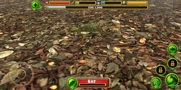 6、攻击猎物成功以后,我们会有着EAT选项,点击之后会吃掉猎物,并获得状态回复和经验值增长。