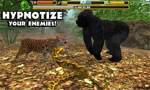 使用锋利的獠牙,快捷的速度,催眠凝视追捕美味的小动物,对抗危险的热带雨林动物,如大猩猩等!