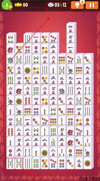 2、玩家需要在上面时间结束之前消除掉所有的麻将块,点击相同样式的麻将块即可消除