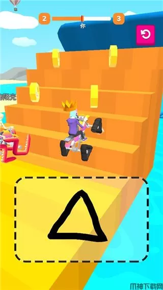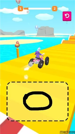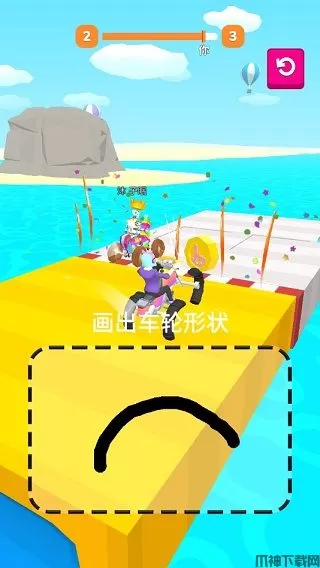 2、而且游戏的操作非常的简单,只需要画出形状,车子将会即时更换成你绘制的车轮,大家可以根据情况来画出适合的形状,第一个到达终点就能取胜!