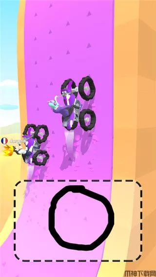 涂鸦骑士3D版还有多种赛道,不管是平地、公路、水下、高坡、斜坡都需要特定的轮胎,大家不要被现实中圆形的轮胎限制了想象,只要是可以跑的更快就可以,不需要在意是否合理,游戏就是这么无厘头。虽然游戏整体玩法简单,但是玩家在面对百变多样的赛道时,不同的轮胎造型会产生千奇百怪的各种结果,相信每一个轮胎都会给玩家带来不一样的游戏体验。