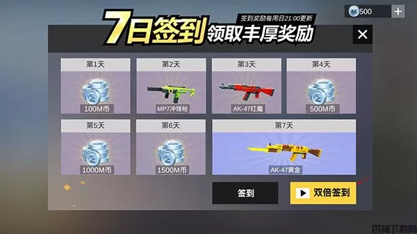 4、7日签到,领取丰厚奖励,点击双倍签到得双倍哦。