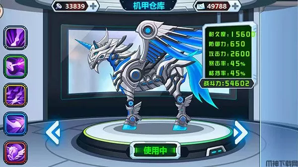 4、进入机甲仓库,可以看到有着多种多样的炫酷机甲,你可以自由进行搭配升级。