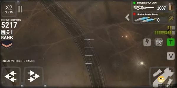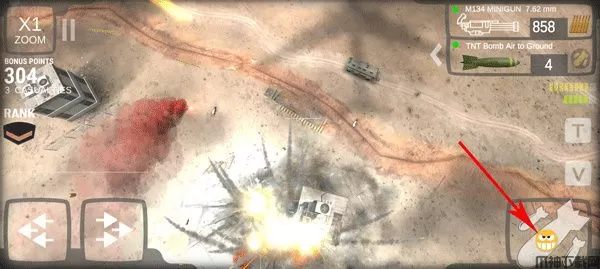 3、这里玩家需要利用虚拟按键控制飞机飞行,还需要控制导弹坠落;