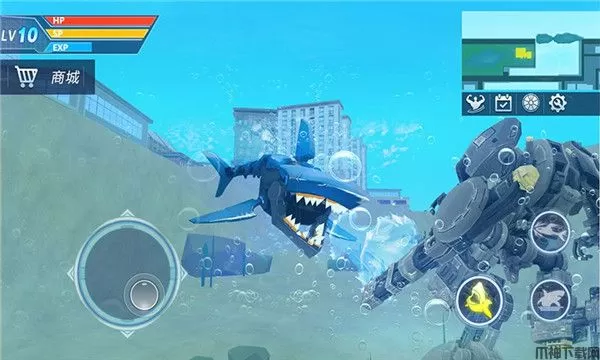 3、随时切换鲨鱼或机器人状态执行多种绝密任务!让玩家从机器人游戏中开始上瘾。