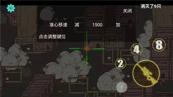 4、瞄准偷粮食的老鼠来进行射击,不要让老鼠成功的偷走粮食则游戏胜利,点击设置即可调整键位,使射击更加准确