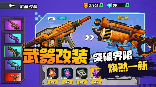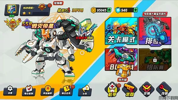 4、不断战斗升级机甲的各项属性,收集各种珍贵材料,来让你的机甲所向披靡。