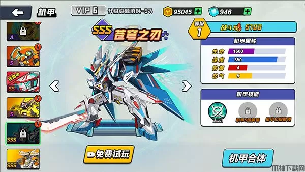 3、机甲系统里面拥有超级丰富的机甲等待玩家解锁,也可以查看机甲的属性;