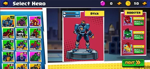 超级机器人英雄官方正版(Robot Super)是一款超级英雄横版动作类格斗游戏,游戏中有各种各样的角色可供玩家进行选择,这些角色从漫画中脱颖而出,然后转变为英雄机器人。在游戏中你将参加一场超级英雄与一系列邪恶恶棍的斗殴,展现你的英雄非凡的实力,在各个战斗中为你呈现如此华丽的战斗史诗,你一定会被史诗般的战斗和拥有强大武器或英雄机器人惊人技能的超能力英雄所吸引。并且,游戏的操作非常的简单,不同的键位对应不同的动作,打击感也非常的强,你将随时随地体验这款最快乐的英雄机器人游戏。