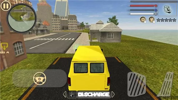 2、每当角色的附近有车辆时,屏幕的左方会有一个汽车头的按钮,点击之后就会让角色就会抢夺车辆,操纵车辆的话在屏幕右下角有两个踏板,左边是删除的按钮,右边是油门,屏幕左下角会有一个类似方向盘的东西,是用来控制方向的,对汽车的操纵一定要好,因为这是我们快速获取金币的最好的办法。