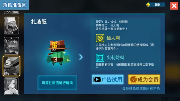 对,就是左边那个戴厨师帽的家伙,如果不是氪金玩家的话我猜这应该是大部分人能入手的第一个英雄,解锁条件是达到六颗血量,主动技能是牺牲自身生命召唤两个小僵尸,可以远距离攻击怪物,小弟打死怪物的时候有概率为自己恢复生命,被动技能是生命低于1颗半的时候攻击翻倍。