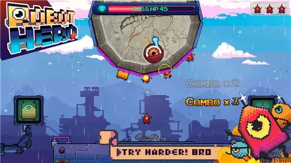 1、新颖有趣的玩法和经典的像素画风,不同于见缝插针的是发射可爱的小机器人来对抗外星人。