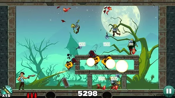 此外,游戏中不同的关卡所具备挑战难度不同,一是僵尸数目大于你的子弹数,二是很多僵尸的站位是你即便有枪也根本射击不到的角度,故此需要大家在发射前计算好弹道轨迹,不断地思考来如何在三枪之内将僵尸全部击败,这样等攻击过后,你就可以看着子弹四处穿梭,把僵尸们全部送回老家啦,因此比愤怒的小鸟更考验玩家的思考能力哦!喜欢的小伙伴赶紧来下载挑战,用最少子弹击杀更多僵尸感受别样的物理射击游戏快感吧!