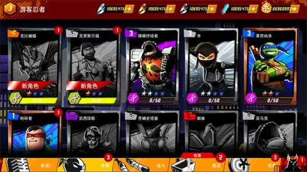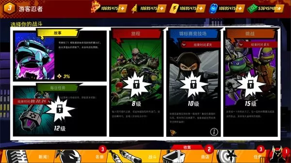 收集每日奖品和卡包来增强你的团队!我们主宰这座城市:在电视节目里忍者神龟最喜欢的地点对抗克朗,包含了 X 次元、下水道和经典的纽约屋顶!