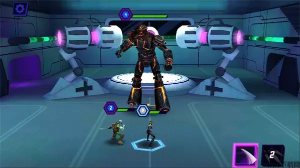 3、神龟之力:在莱昂纳多为了拯救他的忍者神龟兄弟和变种同伴而迎战克朗军队时帮助他。使用你最爱的忍者神龟角色,与莱昂纳多并肩来场五打五的对决!