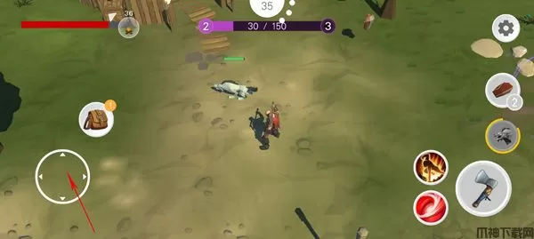 1、进入游戏之后,滑动左下角的摇杆进行角色的移动;