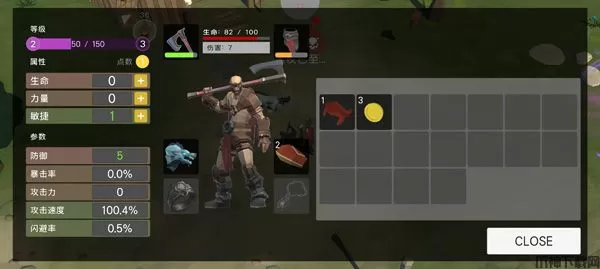 2、点开摇杆上方的背包可使用道具和查看角色属性;