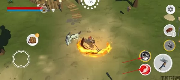 4、点击右下角两个技能按钮可使用技能攻击附近的所有敌人;