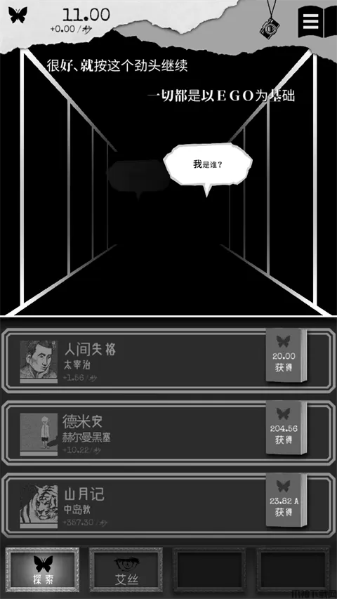 点击对白框,收集EGO,使用EGO体验剧情、进行性格分析,通过游戏重新认识自我。